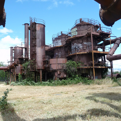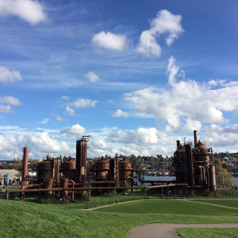 Gas Works Park is a 20.5 acre park on the north end of Seattle’s Lake Union. Recognized for its innovative brownfield rehabilitation as an urban park in the 1970s, it is a National register listed property and a locally designated landmark. Constructed in 1906, the site was home to a gas manufacturing plant called Lake Station, which operated until 1956. The property was abandoned for six years until the City of Seattle purchased the land, and, at the urging of park advocates, a master plan was developed by renowned landscape architects Richard Haag Associates. Haag’s design kept several structures, including the steel towers, railroad trestles, and select buildings, noting their “historic, esthetic and utilitarian value.”